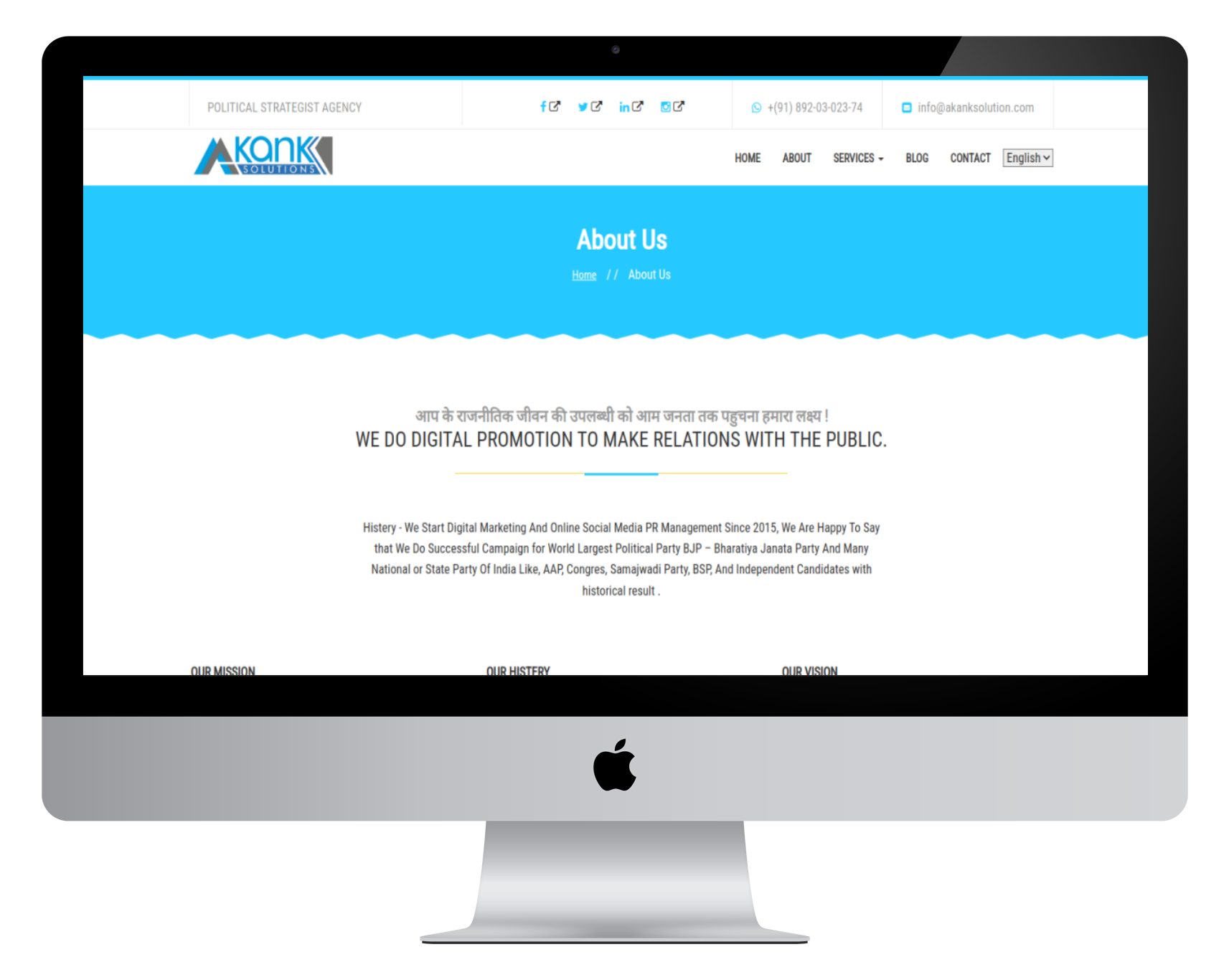 We are social media based Public Relation Management since 2015. Happy to say that we do successful campaign for world largest political party Bharatiya Janatha Party (BJP) and many national or state party of India Like Aam Aadmi Party (AAP), congress, samajwadi party, and Independent Candidates with historical results.